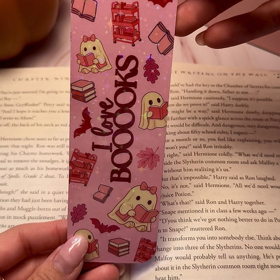 Spooky-cute vibes for your reading stack 👻💕 This pink holographic ghost bookmark is the perfect accessory for cozy fall reading or as a gift for any book lover.