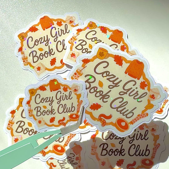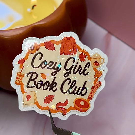 Celebrate autumn reading with our Cozy Girl Book Club Sticker. Featuring warm fall tones and holographic sparkle, this handmade sticker is the perfect little accessory for journals, e-readers, and cozy book setups.