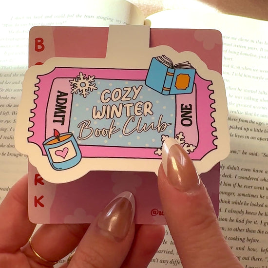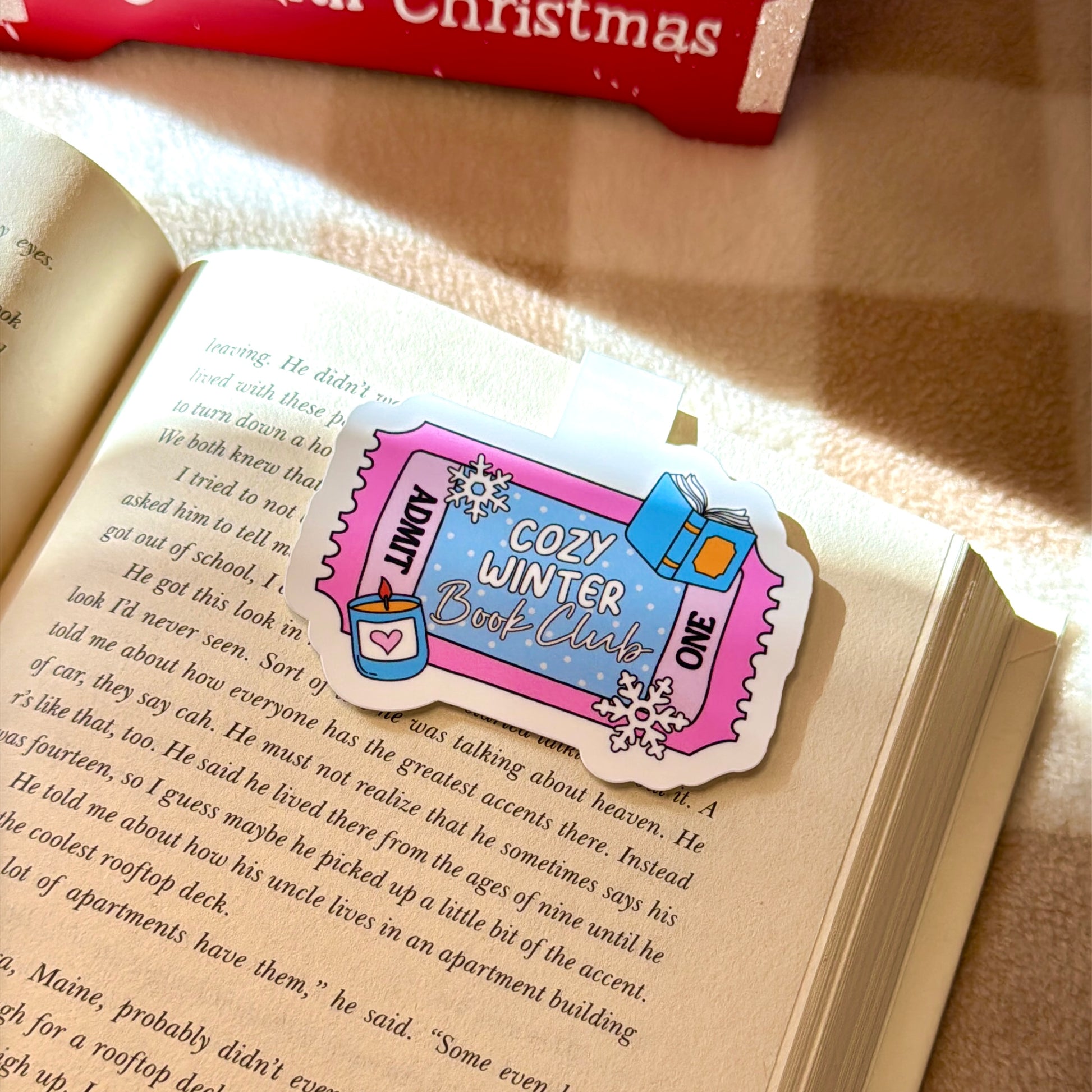 The Cozy Winter Book Club magnetic bookmark is inspired by cocoa, twinkly lights, and slow winter nights.