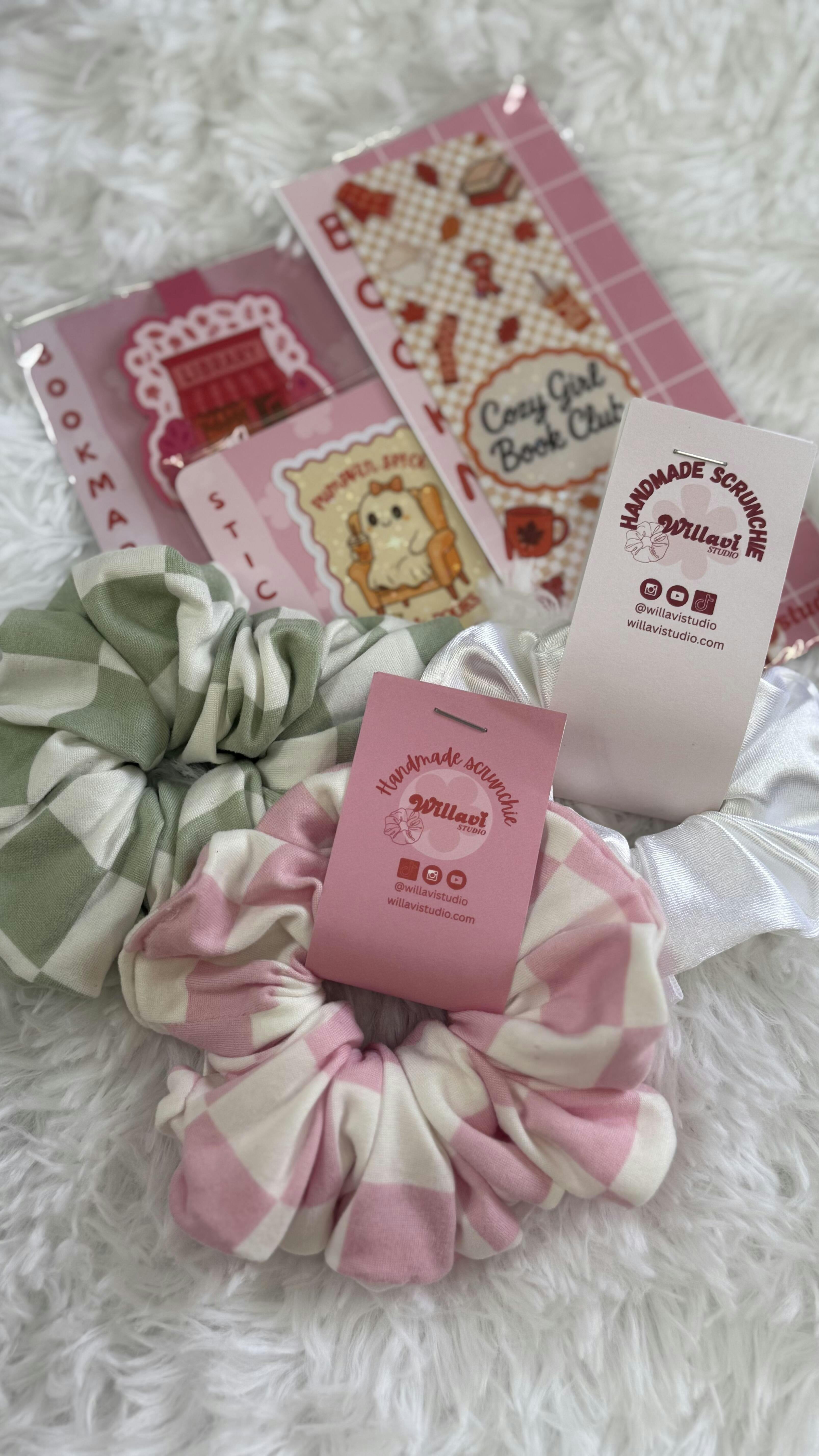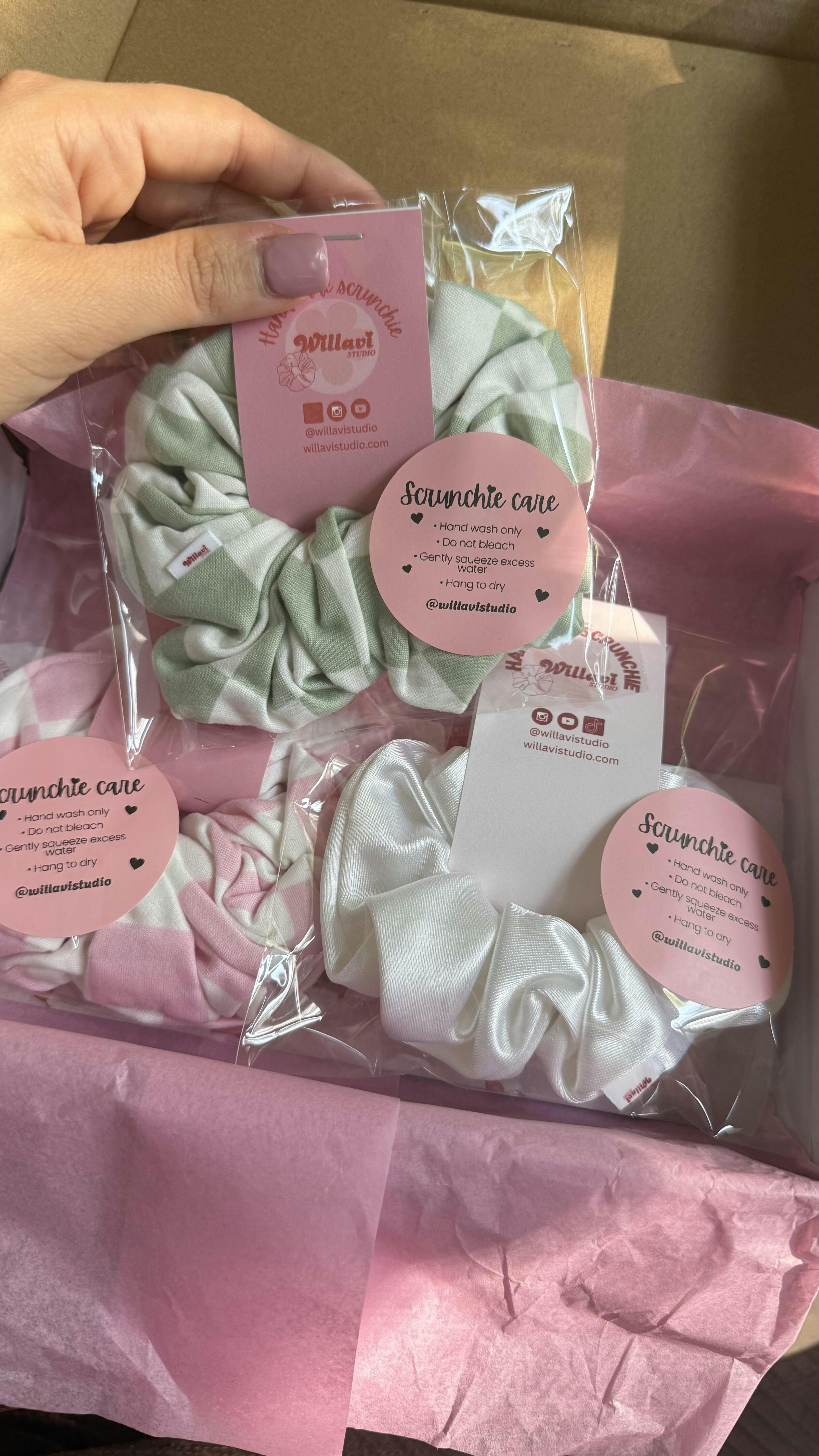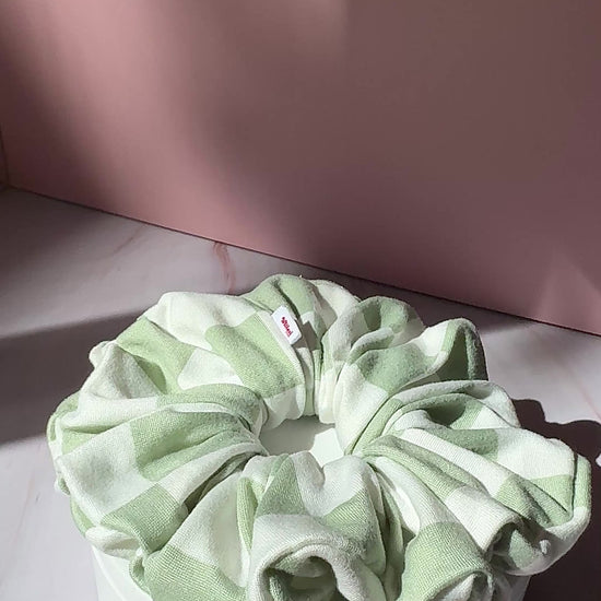 Fresh, soft, and perfectly cozy. The Green Gingham Check Scrunchie is handmade with pastel green & white checkered fabric that feels timeless and sweet. Gentle on your hair but strong enough to hold your ponytail or bun, it’s the cutest everyday accessory with a soft cottage core twist.