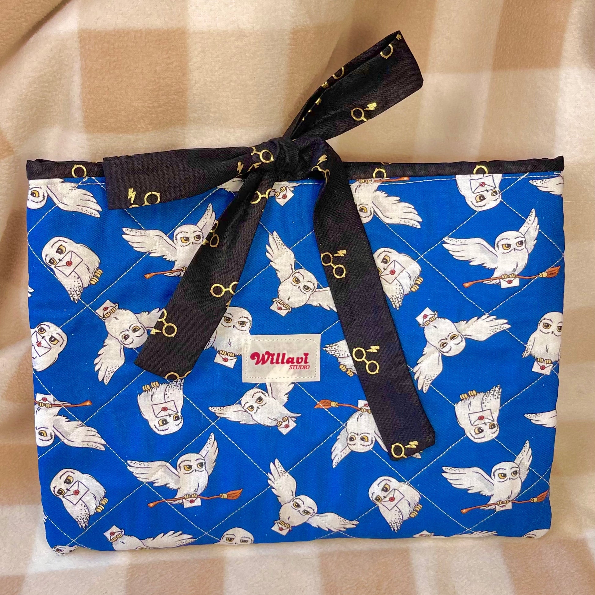 The Owl Mail Delivery book sleeve is handmade with quilted cotton and features the sweetest flying owls on a deep navy background. It’s soft, protective, and perfect for anyone who believes books carry a little magic.